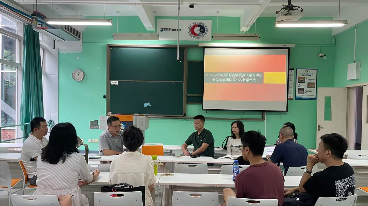 2025年9月19日,重庆工商大学国际商学院英语语言中心召开2025-2026学年第一学期雅思教学团队首次教学例会。会议由英语语言中心主任贺苹主持,学院詹川院长、陈昌盛副院长出席并作出要求,雅思教学团队全体教师参会。