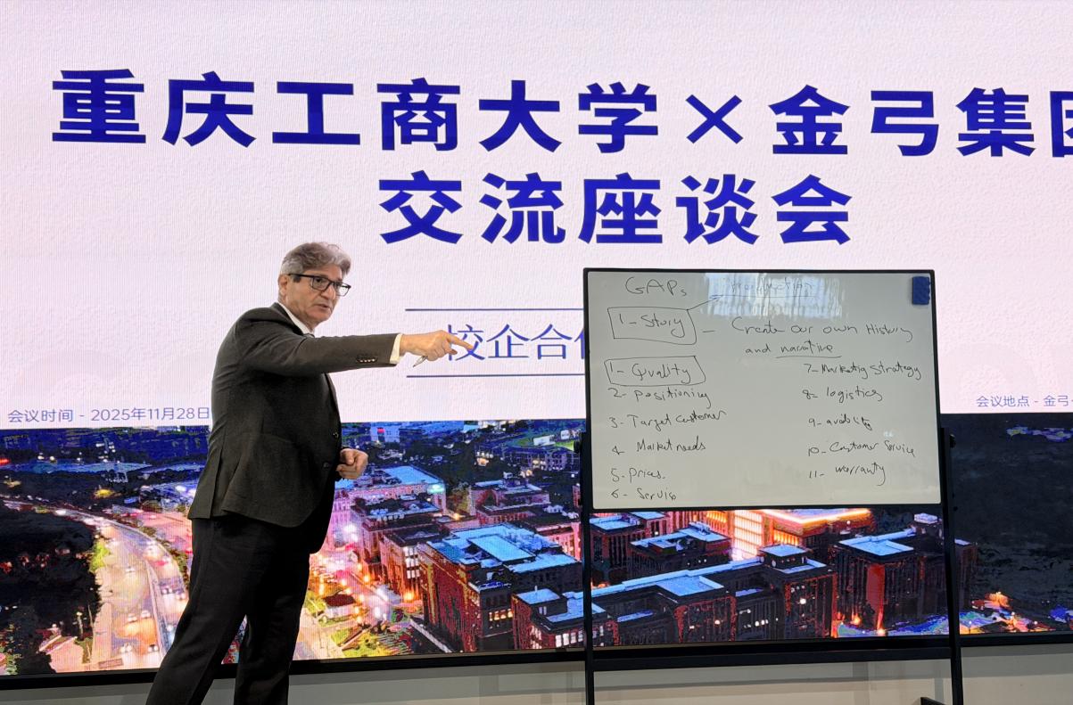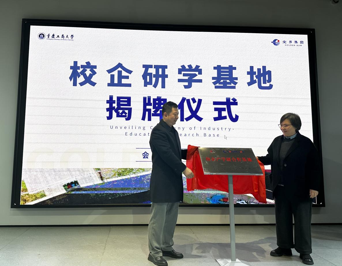 2025年11月28日,重庆工商大学国际商学院与重庆金弓集团动力有限公司“校企产学研合作基地”挂牌仪式暨合作推进会在金弓·爱尚两江会客厅成功举行。本次活动标志着双方在前期签订合作协议基础上,正式迈入产教融合、产学研协同的实质性合作阶段。