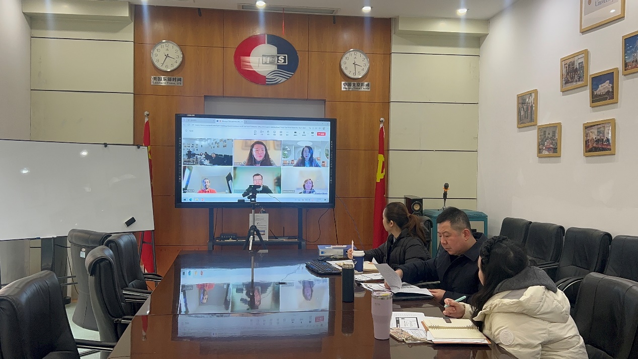2026年1月7日15:30,我院与法国勃艮第高等商学院(BSB)视频连线,召开2+2联合培养项目专题线上会。外方由国际发展处负责人HalloumiRudy率领相关工作人员出席,我院院长詹川、国交法语部部长张蓝月携全体部门人员共同参会,双方围绕深化校际合作、推进2+2联合培养项目等议题展开深度磋商。
