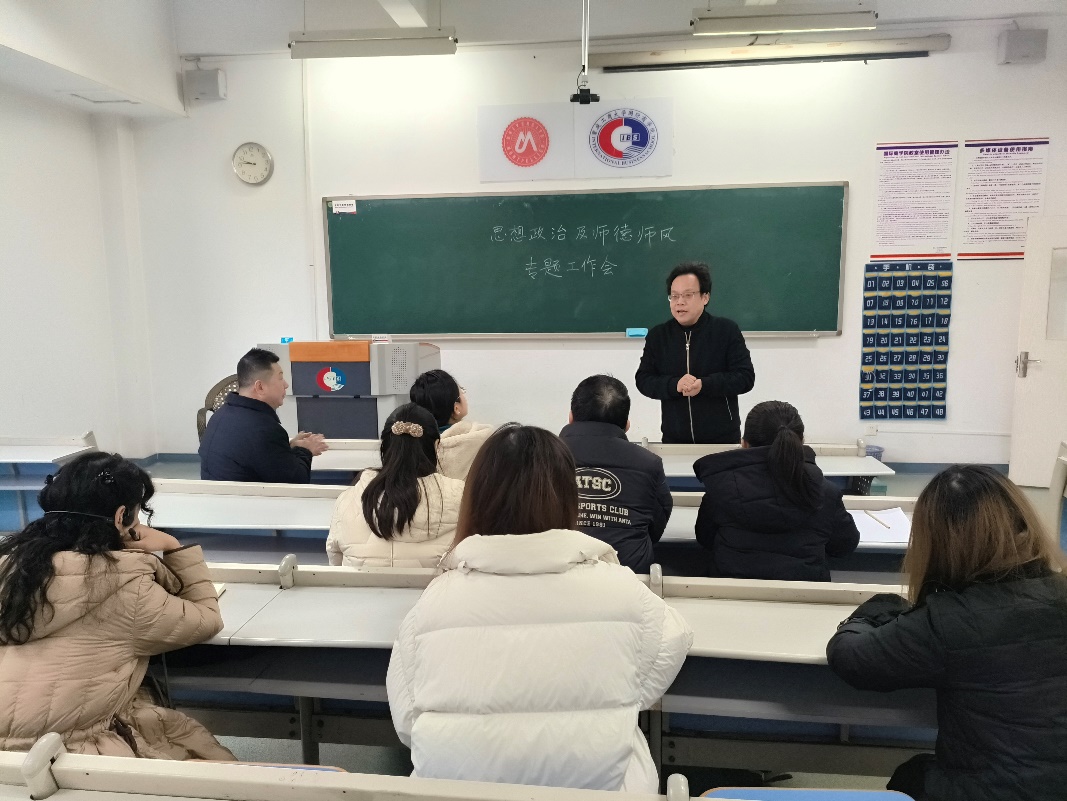 会议围绕2026年师德师风建设计划、师德师风专题活动、师资舆情动向、教职工心理健康等方面作部署,特别针对学院中外合作办学特色,对外籍教师师德师风建设进行了讨论。
